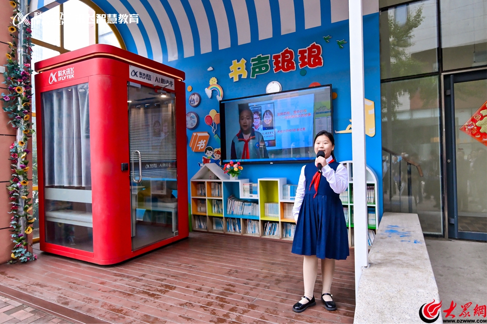 移步向前,朗读亭内传来琅琅书声。学校通过朗读亭与小程序的联动,打造了“互联网+悦读”空间,让学生可在课外碎片化时间开展朗读训练,系统还能从流利度、情感表达等维度测评并推荐素材,有效拓展了语文学习场景。